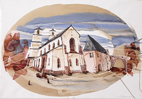 "MAGNUSKIRCHE" 100 X 70 AQUARELLPAPIER, FARBIGE TUSCHE