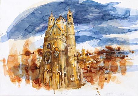 "LIEBFRAUENKIRCHE" 100 X 70 AQUARELLPAPIER, FARBIGE TUSCHE