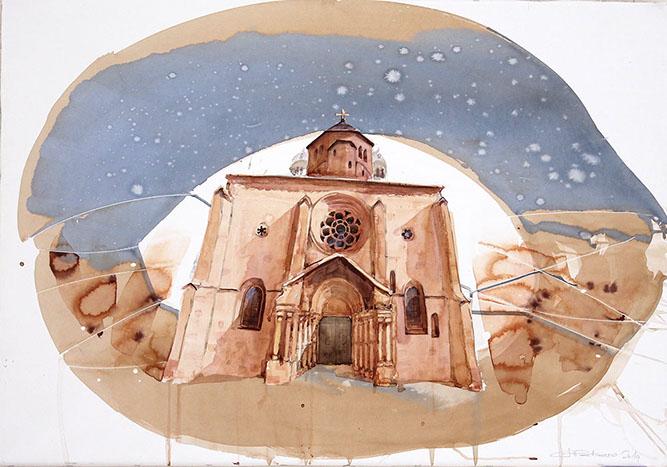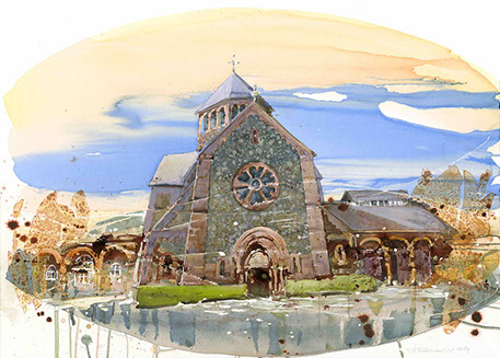 "DREIFALTIGKEITSKIRCHE" 100 X 70 AQUARELLPAPIER, FARBIGE TUSCHE