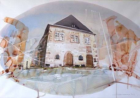 "SYNAGOGE" 100 X 70 AQUARELLPAPIER, FARBIGE TUSCHE