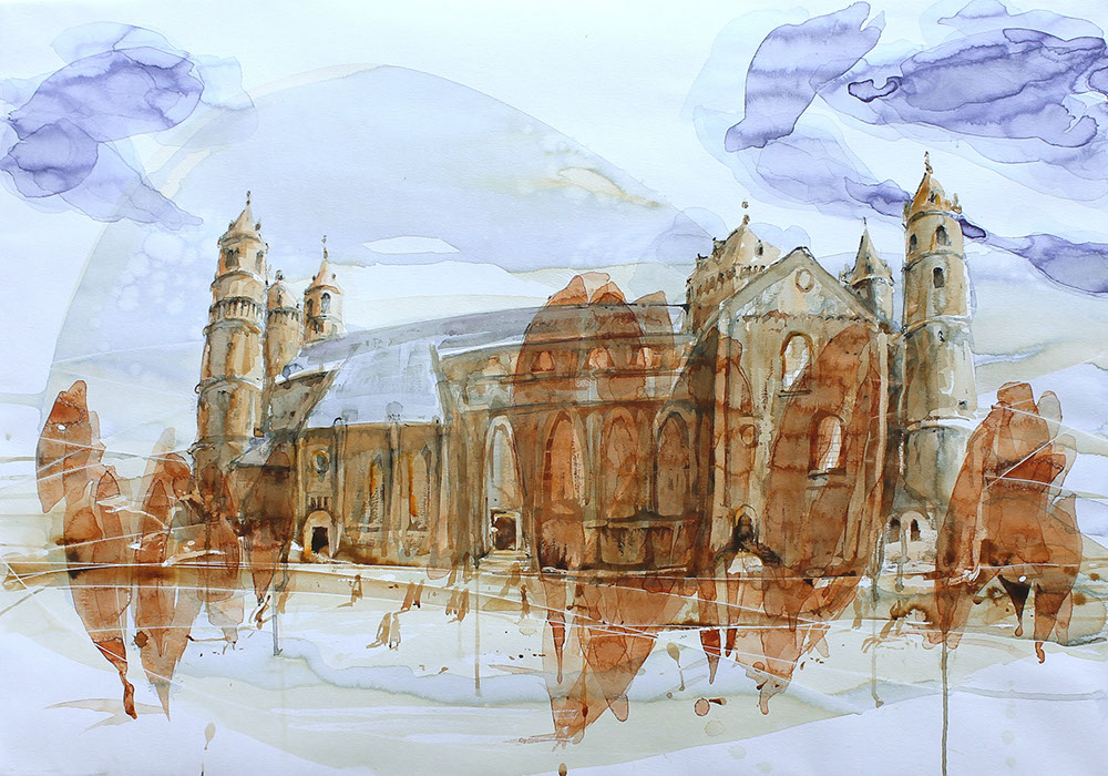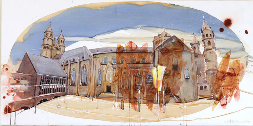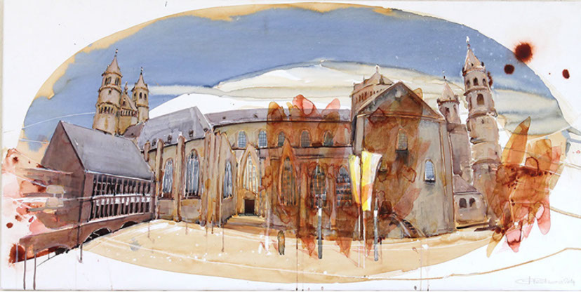"MAGNUSKIRCHE" 100 X 70 AQUARELLPAPIER, FARBIGE TUSCHE