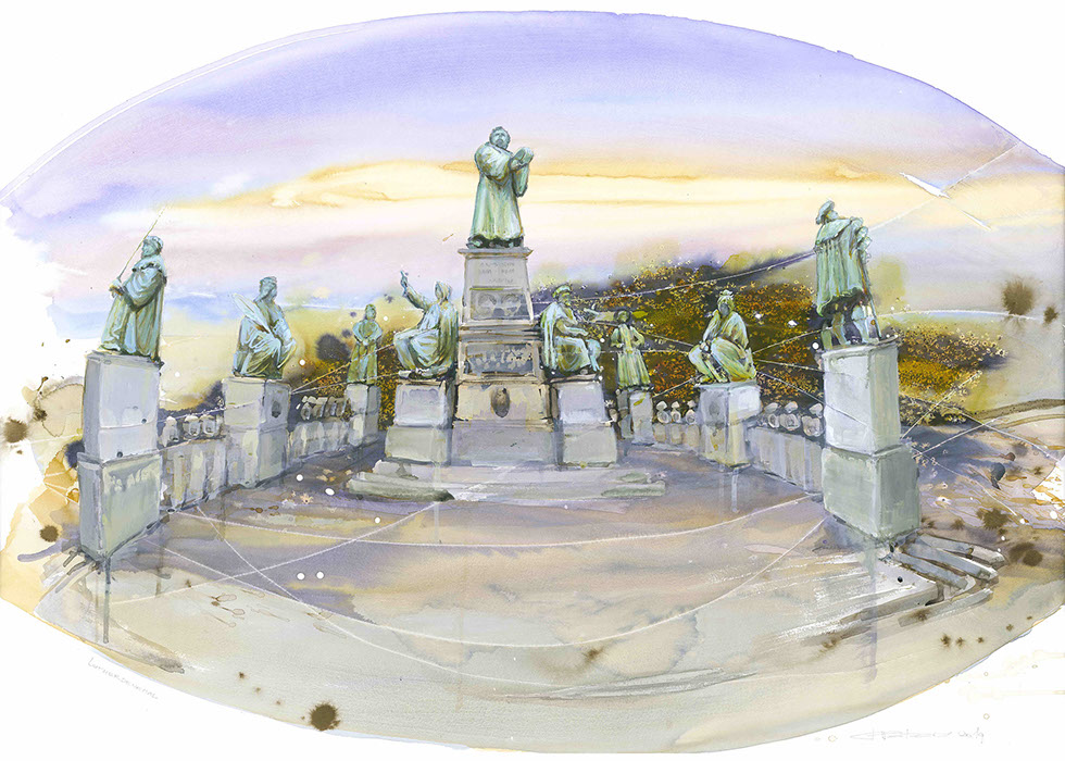 "LUTHERDENKMAL" 100 X 70 AQUARELLPAPIER, FARBIGE TUSCHE