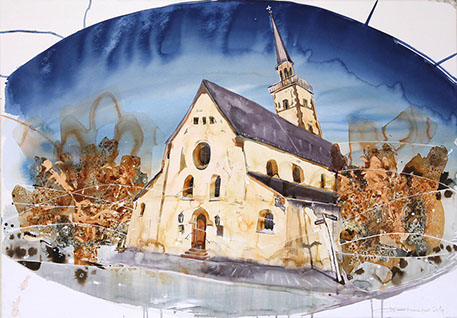 "LUTHERKIRCHE" 100 X 70 AQUARELLPAPIER, FARBIGE TUSCHE